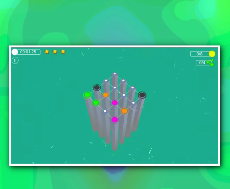 Zen Connect is a beautifully designed grid-based puzzle game where your goal is to connect dots of the same color with lines. Complete all color matches to fill the board and advance to the next