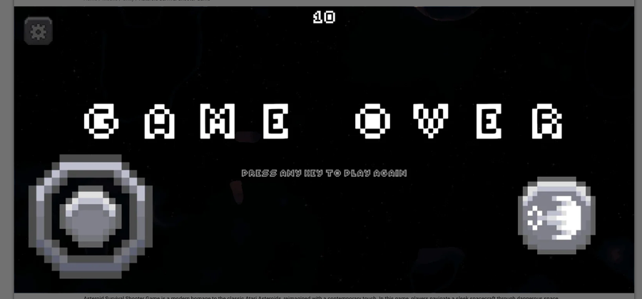 Asteroid Survival Shooter Game is a modern homage to the classic Atari Asteroids, reimagined with a contemporary touch. In this game, players navigate a sleek spacecraft through dangerous space zones, facing an endless wave of asteroids. The longer you survive, the more intense the challenge becomes as asteroid spawn rates increase over time.