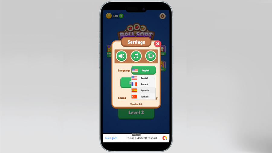 Ball Sort – Perfect Jam is trending game puzzle game on Google Play and App Store .This game helps you reduce time to build a similar game easy. You do not need to know any programming language to configure and use it. It is very easy to fill it with your own tasks, make UI changes,change your Admod, Unity, IronSource ID start to gain experience in promoting your game and earning money. We will support you until you feel the most satisfaction for this asset.