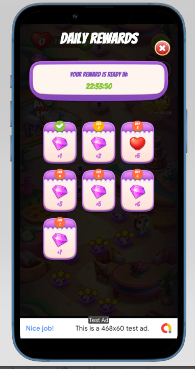 - Daily Reward: Player is given a daily coins, items reward each day they open the app!