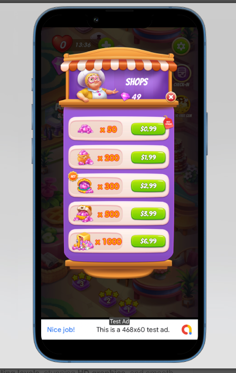 - Unity IAP Systems: Players can purchase coins on the in game store