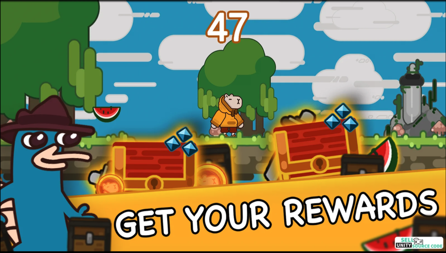 Capybara Adventure is an addictive endless-running game in an uncharted world, rush and seek treasures as fast as you can! FASCINATING CAPYBARA You will play as a charming capybara. The unique jumping mechanic allows you to control the strength of the jump and rush only by jumping, which creates an interesting amazing gameplay in this fun 2D game. unity 2022