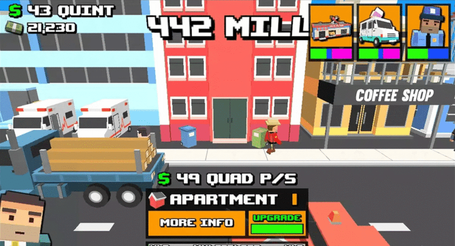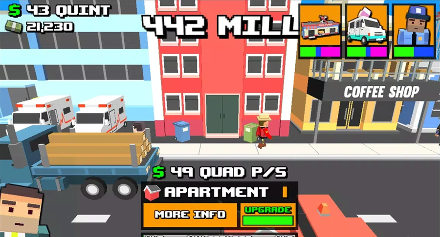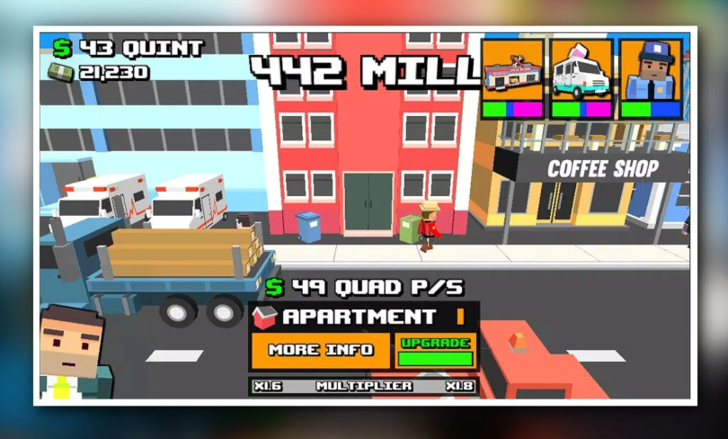Plan your layout wisely: firetrucks power up fire stations, cafes enhance nearby buildings, and ice-cream trucks spread happiness. Watch your city evolve with smart decisions and endless tapping. Featuring offline progression, tons of upgrades, and over 90 unique unlockables, Clicker Town delivers hours of addictive idle gameplay in a charming cube world.