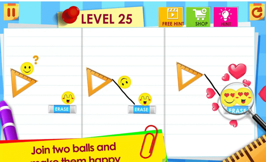 Draw lines to bring emoji balls together
