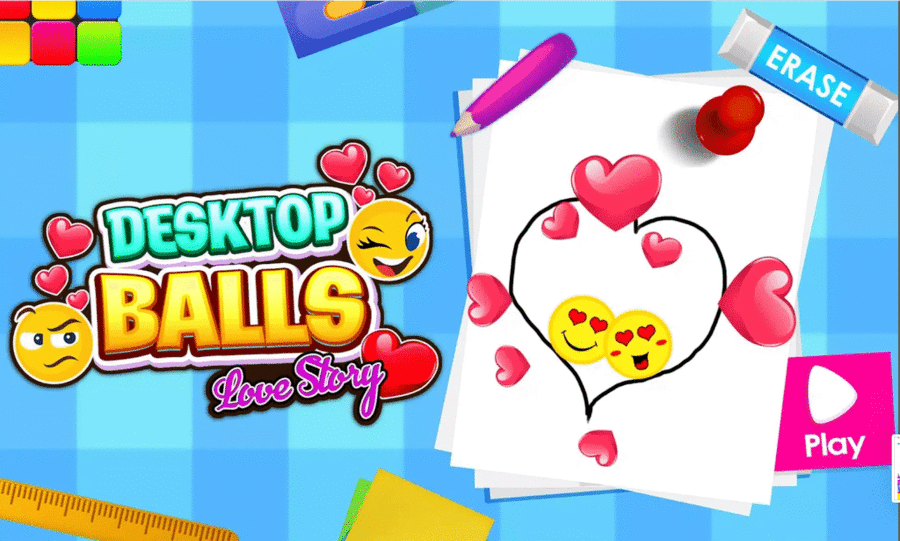 Desktop Balls is a cheerful line-drawing puzzle where you guide two emoji balls into a loving reunion. Draw paths, dodge obstacles, use rotating platforms, and outsmart tricky layouts. With 300