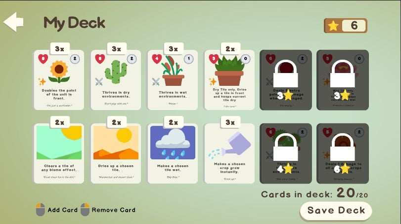 Harvest Hues is a cozy, turn-based card strategy game where players cultivate a colorful garden filled with plants that each have their own abilities. Every card you play grows into a unit-from classic roses to exotic rafflesia-adding tactical depth to each move. Strategy is key: plants need time to grow, and anticipating your opponent’s actions is crucial to victory. Manage tile conditions like wet or dry soil, use power-ups, and build your perfect deck to dominate your opponents. With multiple levels and progressive challenges, Harvest Hues offers a relaxing yet deeply tactical gameplay experience for garden lovers and card game enthusiasts alike.
