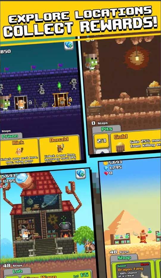 Travel through multiple locations to unlock buildings and upgrades.