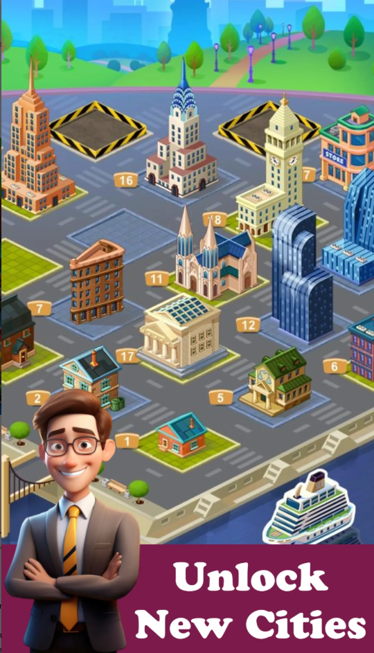 Idle City Tycoon – Tap to Build is an idle city-building game where you grow your own metropolis from the ground up. Start as a small builder and expand your city with skyscrapers, businesses, and infrastructure. Tap to construct new buildings, upgrade them, manage resources, and watch your empire continue to grow even when you are offline. Rise to become the ultimate city tycoon as your skyline reaches the clouds.