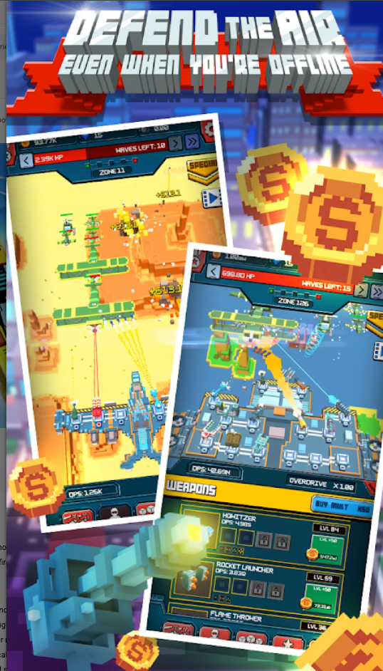Idle Defender: Tap Shooter is an idle retro shooter where you command a helicarrier and blast waves of enemies. Tap to fire, or let your weapons shoot automatically while you focus on upgrades, layout strategy, and maximizing your ship’s firepower. Build drones, collect loot, rescue prisoners, unlock new weapons, and enhance your carrier to dominate the skies.