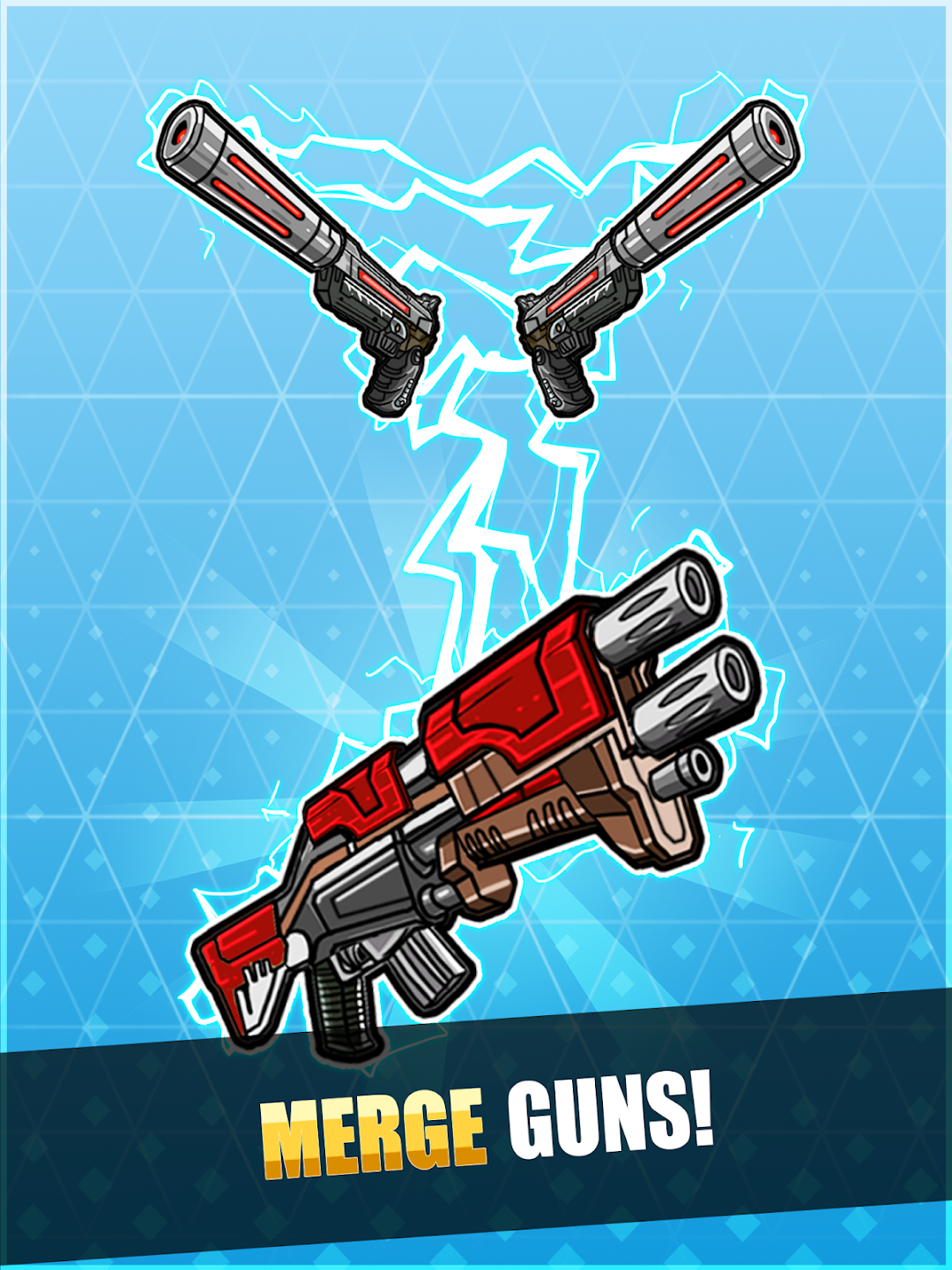 • ⚔️ Weapon Merge Mechanic: Collect and merge over 400 unique weapons to create stronger combinations and powerful results.