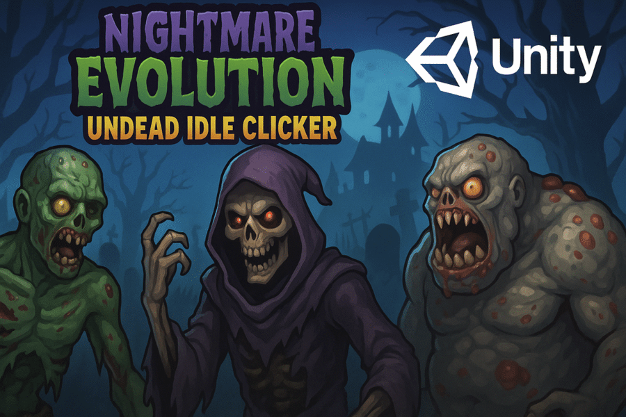 Nightmare Evolution: Undead Idle Clicker is a spooky idle evolution game where you merge and upgrade zombies, vampires, soul reapers, and other undead creatures. Designed for fans of evolution clickers, you’ll control a vampire castle, create bizarre undead species, and boost your way through the undead world. Built with Unity 2022 or higher, this project is perfect for reskinning and publishing to mobile platforms.