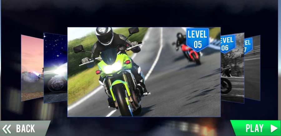 This game has 4 type of scene in build: menu,store,level and all gameplay scenes located in Assets/bikescenes.