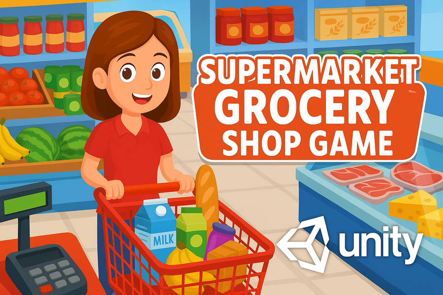 Supermarket Grocery Shop Game is a complete Unity template that lets you run your own virtual supermarket. Take on the role of a supermarket cashier and store manager in this fun and engaging 3D simulator. From scanning items at the checkout to expanding your store with new departments like bakery, dairy, and fruits, this game delivers a full market management experience.