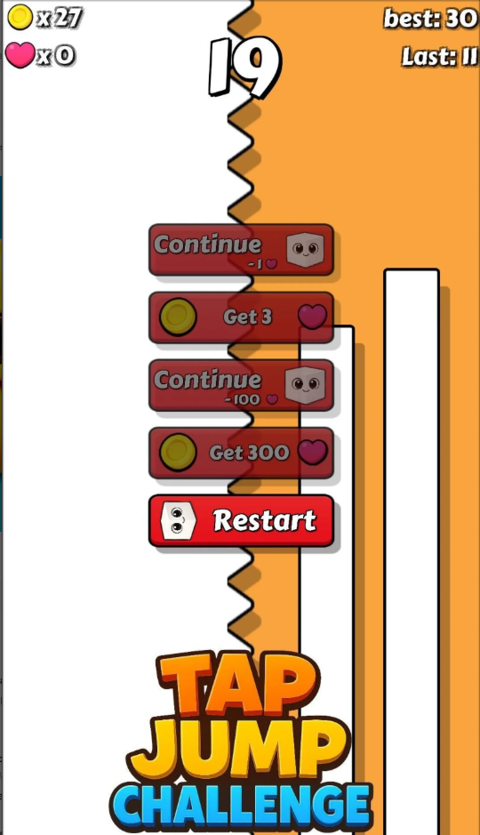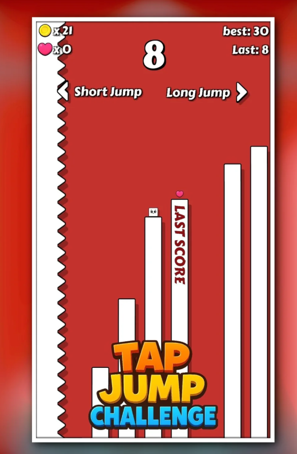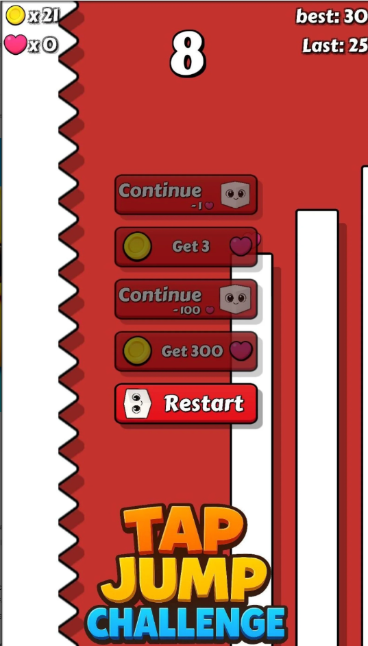 Tap Jump Challenge is a 2D endless casual game built in Unity, designed for quick publishing on Android and iOS. With progressive difficulty, addictive one-tap gameplay, and lightweight performance,