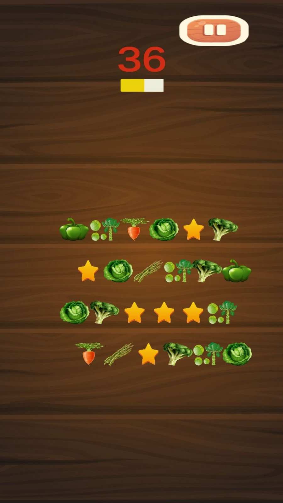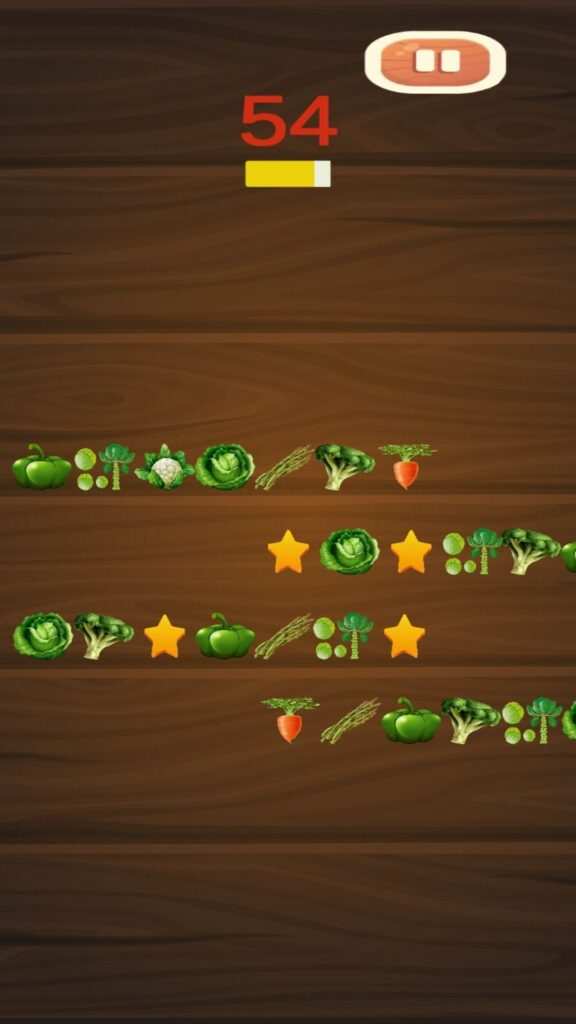 Earn stars and points by clearing all veggies before the timer runs out.